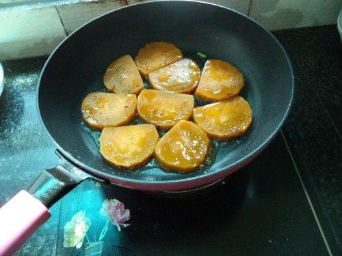 4. 火候:先用中小火将瓜片煎至两面微黄,然后加入调料,继续煎至瓜片熟透即可。